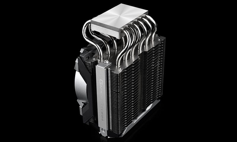 Разработчики не поскупились на металл: и то самое перекрестие, и рамка вентилятора сверху изготовлены из алюминия. Добавим к этому сам вентилятор диаметром 120 мм, медное основание габаритами 68 х 46 мм, шесть медных тепловых трубок диаметром 6 мм, алюминиевый радиатор габаритами 120 х 79 х 155 мм – и получим массу охладителя почти 1,2 кг!