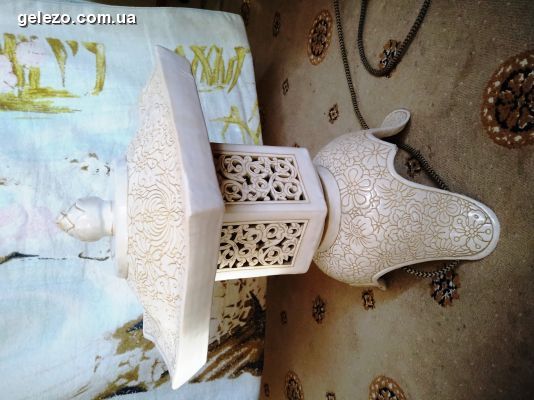 Продам вінтажний світильник (ймовірно В’єтнам), середина минулого сторіччя. Колір – слонова кістка. Гарний стан. Лампа стандарт е27, 220В. В-50 см. Ш-40 см. 2800 гр.